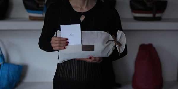 ラッピングはエチオピア製のコットン布地にロゴをあしらったダストバッグにお包みしてお届けします。ご購入後も大切な製品の保管に末長くご活用いただければ幸いです。