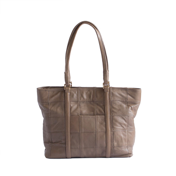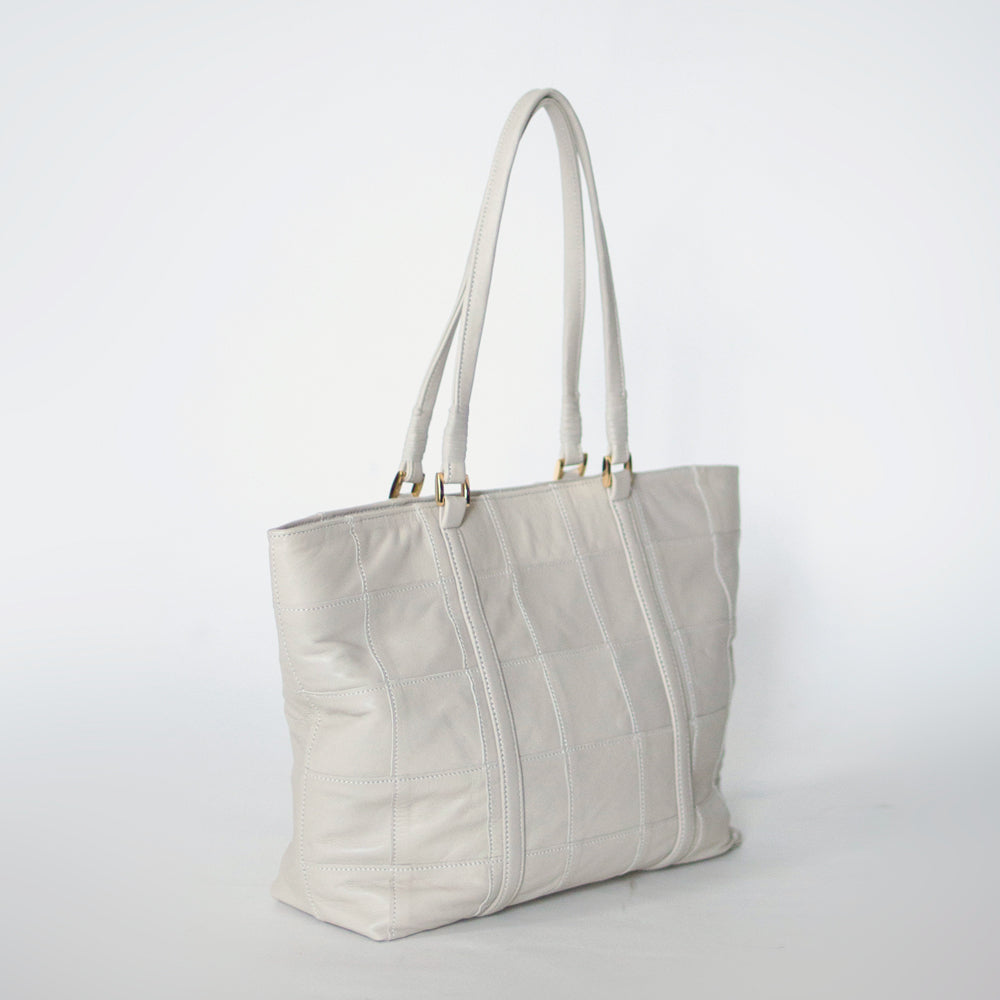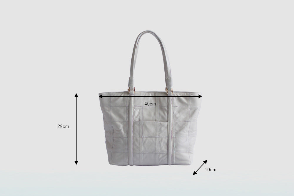 スクエア状に裁断されたレザーを一針ずつ丁寧に縫い上げる緻密な手仕事。細身のハンドルとミニマルなシルエット。ビジネスシーンにも馴染む、端正で静かな佇まいを演出します。