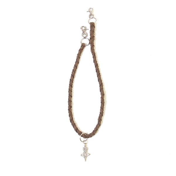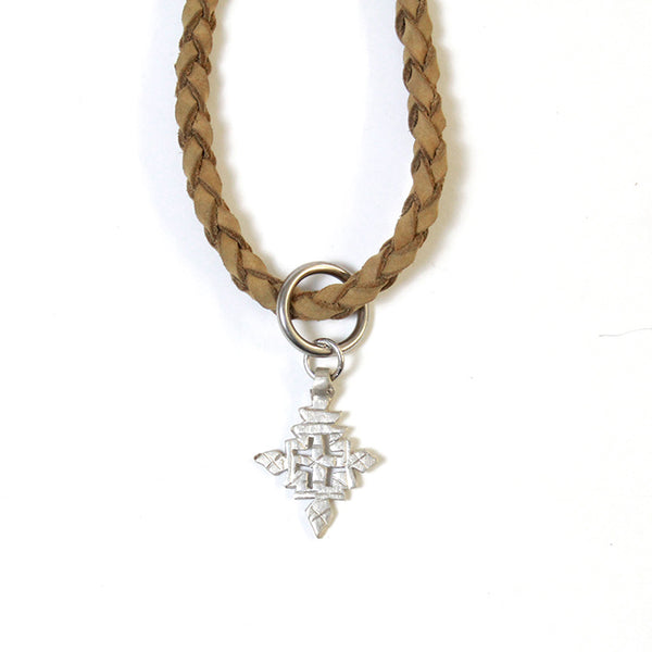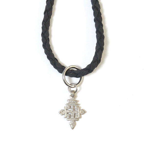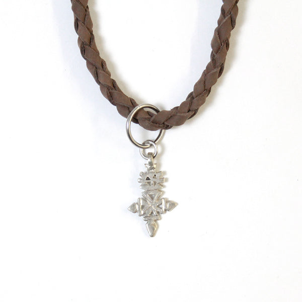 An antiwue Ethiopian cross is attached to a leather code made of Ethiopian pull-up leather (bull/cowhide leather) carefully woven by skilled craftsmen.