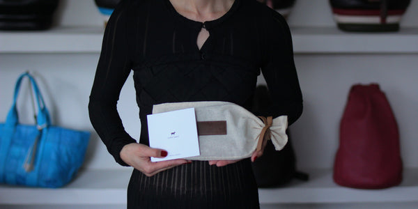 ラッピングはエチオピア製のコットン布地にロゴをあしらったダストバッグにお包みしてお届けします。ご購入後も大切な製品の保管に末長くご活用いただければ幸いです。