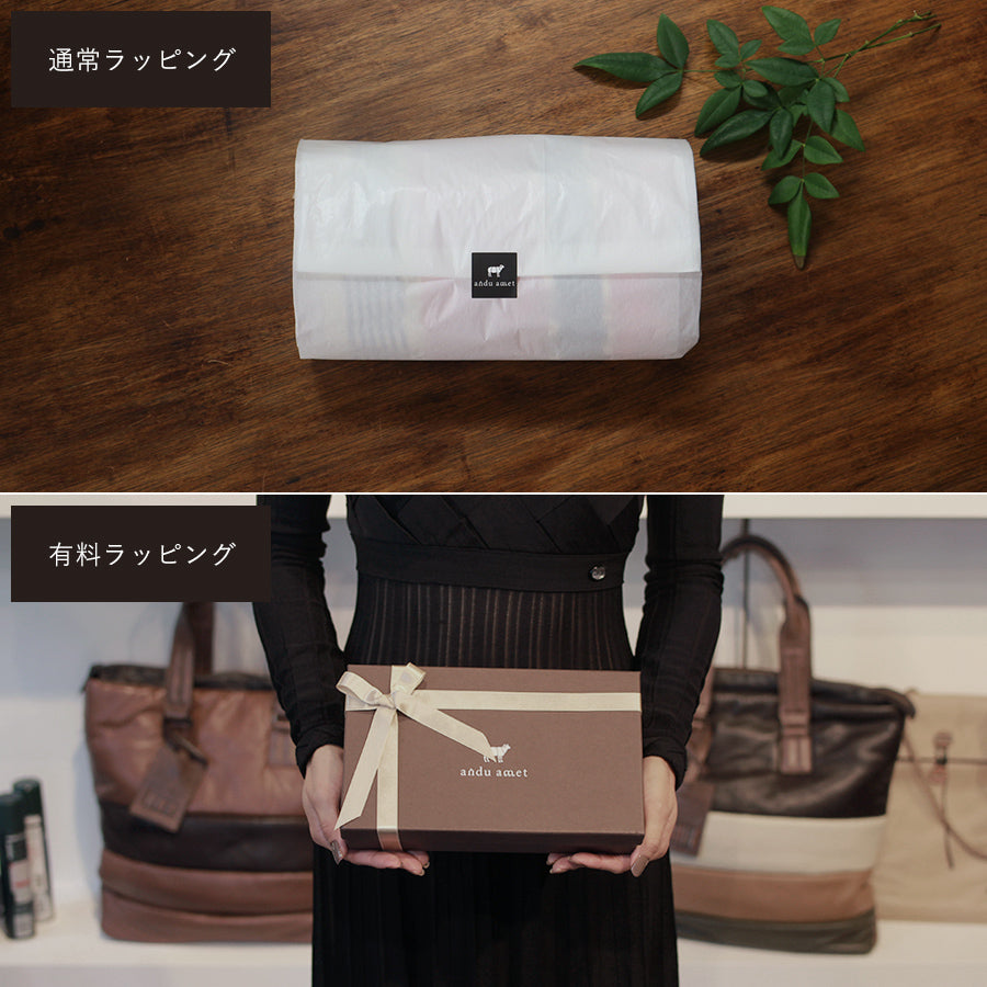 As our standard wapping for gift, we deliver our products by using dust bag with our logo, made of breathable cotton. We hope you to use this bag for storing your precious leather goods for a long time after purchase.
