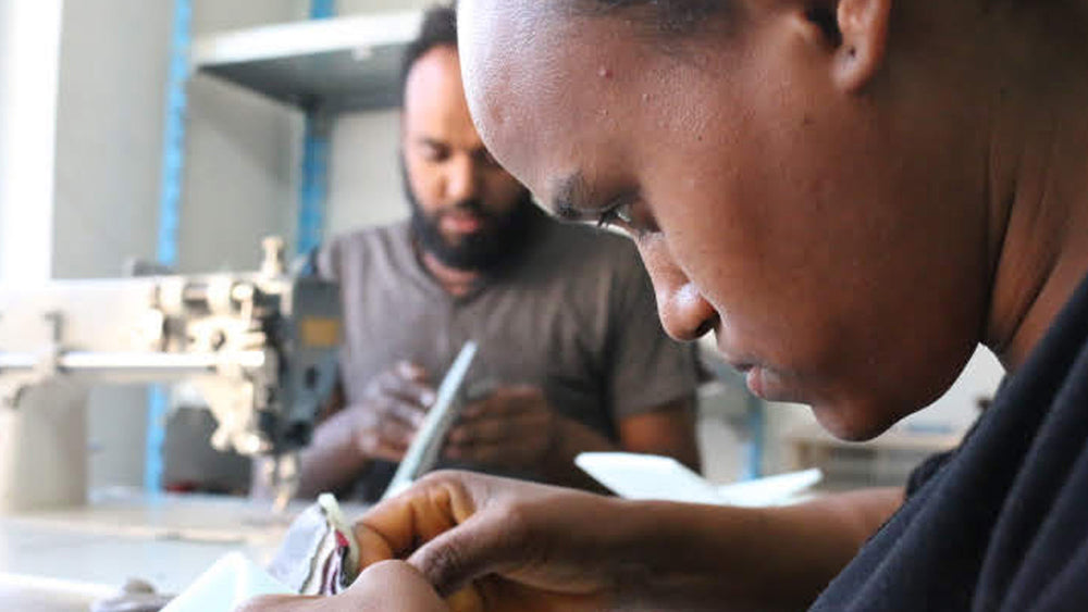 特に苦労したのは、ボトムと本体の縫い合わせ。この作業は、andu ametの職人の中でも最も技術力の高いAsmamawが担当しました。