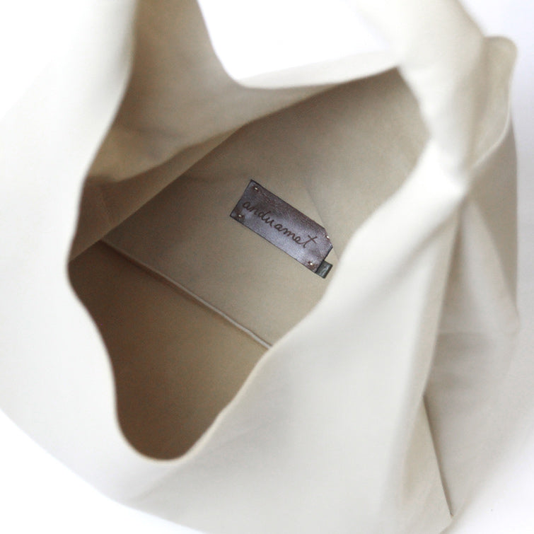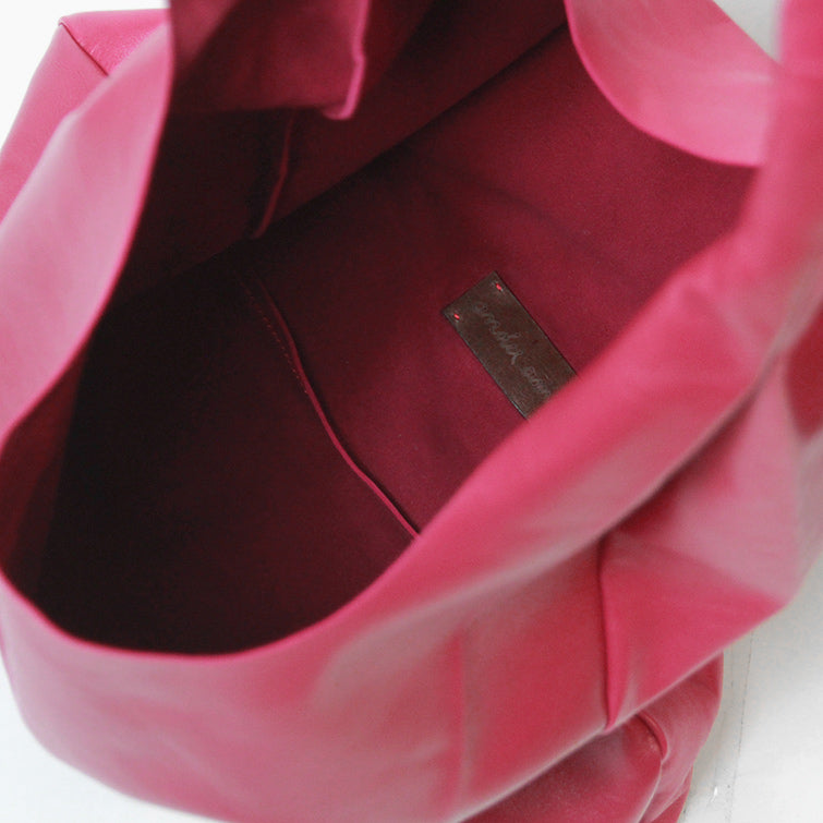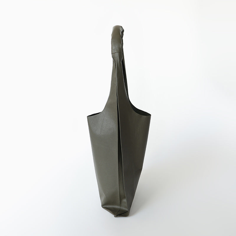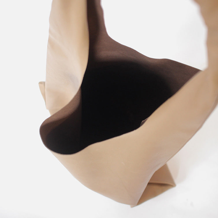 裏地を使わない、つぎはぎもない一枚仕立てのバッグは、素材の表側も裏側もすべてみえるので、本当によいレザーでしか作れません。最高級レザーだからこそ、その魅力がひきたつシンプルなデザインで、おつくりしました。繊細な風合いながらも丈夫で「最高級のレザー」とも称されるエチオピアシープスキンを存分にお楽しみください。