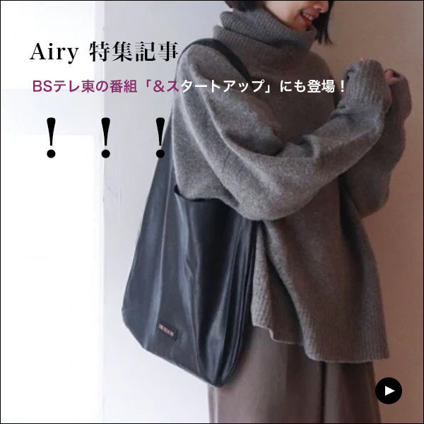 大容量ながら、手にしていることを忘れるほどの軽量バッグ、「Airy(エアリー)」。そよかぜにさえふわふわ飛んでいきそうなこの軽やかさは、薄くても丈夫なエチオピアシープスキンの成せるわざ。厚みのある牛革や、強度の弱い一般的な羊革では成り立たないデザインなのです。 シンプルながら、一枚革を丸ごと贅沢に使い、その極上の感触を存分にお楽しみ頂けます。 別売りのバッグチャームと合わせるのもおすすめです。