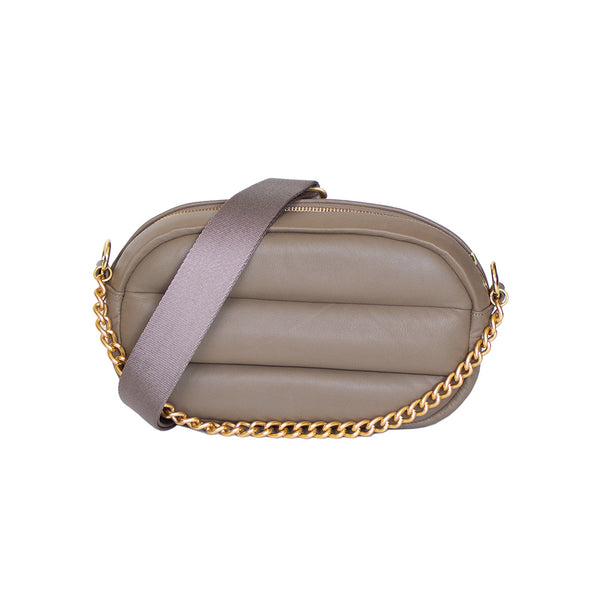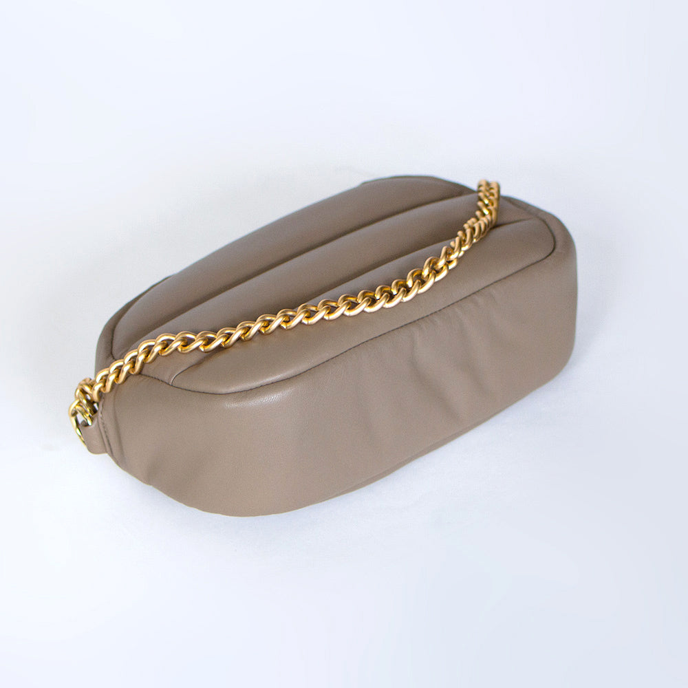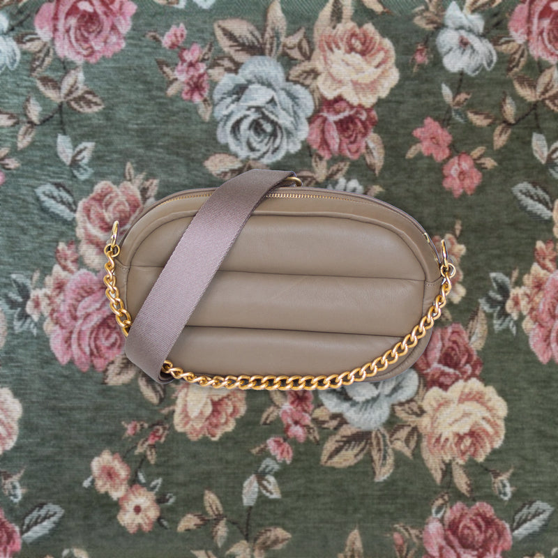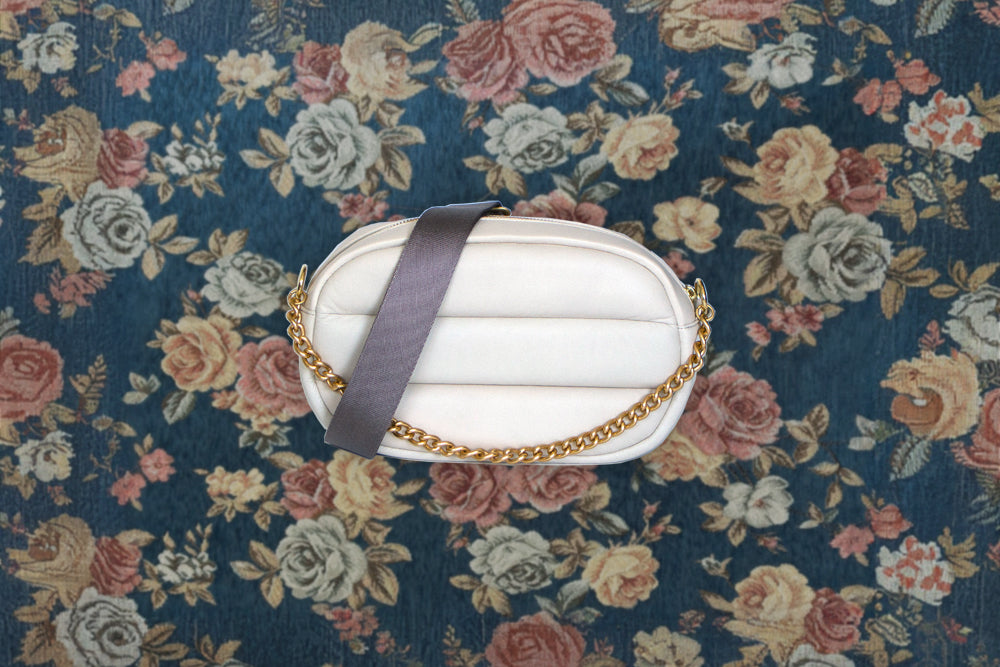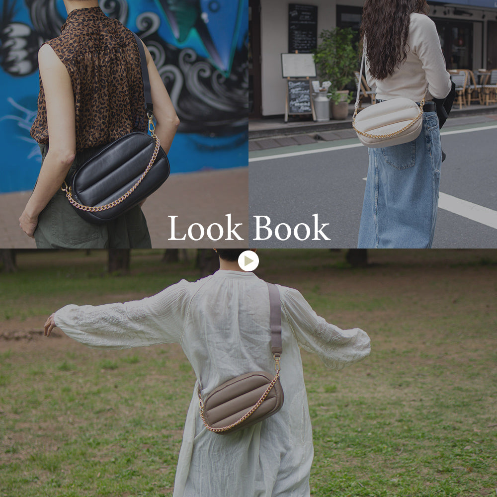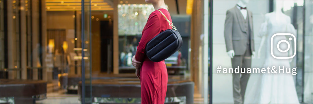 華やかながらも落ち着いた質感のマットゴールド チェーンと、取り外し・長さ調整が可能なストラップが付属。手持ちでレディライクに、肩がけでカジュアルに、斜めがけでストリート風に…と、さまざまなシーンでお使いいただけます。ショッピングに、デートに、トラベルに…いつでもどこでもこのバッグと一緒にお出かけして、癒されていただきたいという気持ちを込めて、「&Hug」と名付けました。