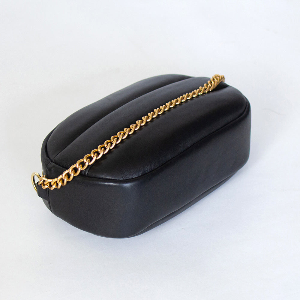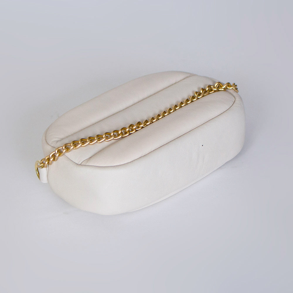付属のチェーンは、革に長時間あたると跡がつく場合がございます。保管の際にはチェーンをバッグの中に入れ込んで収納することで、革面を綺麗に保つことができます。