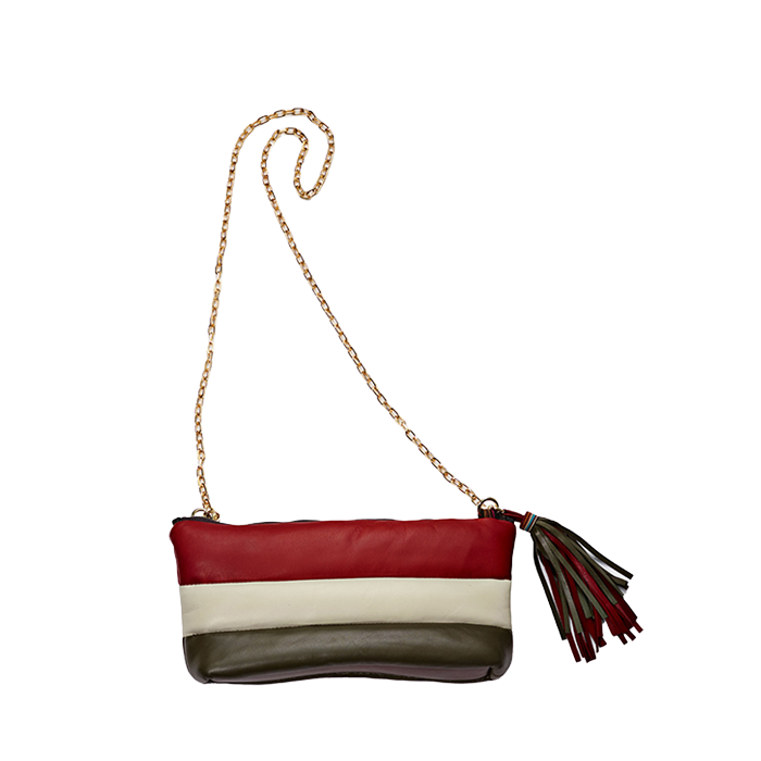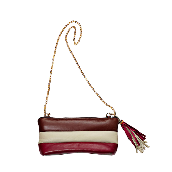 取り外し可能なチェーンがついていて、ロングウォレットとしても、クラッチとしても、ハンドバッグとしてもお使いいただけます。チェーンは、シングルにつければポシェットタイプに、ダブルにつけると手持ちのハンドバッグタイプに変身します。