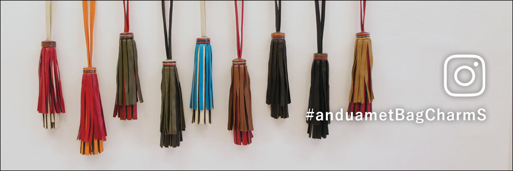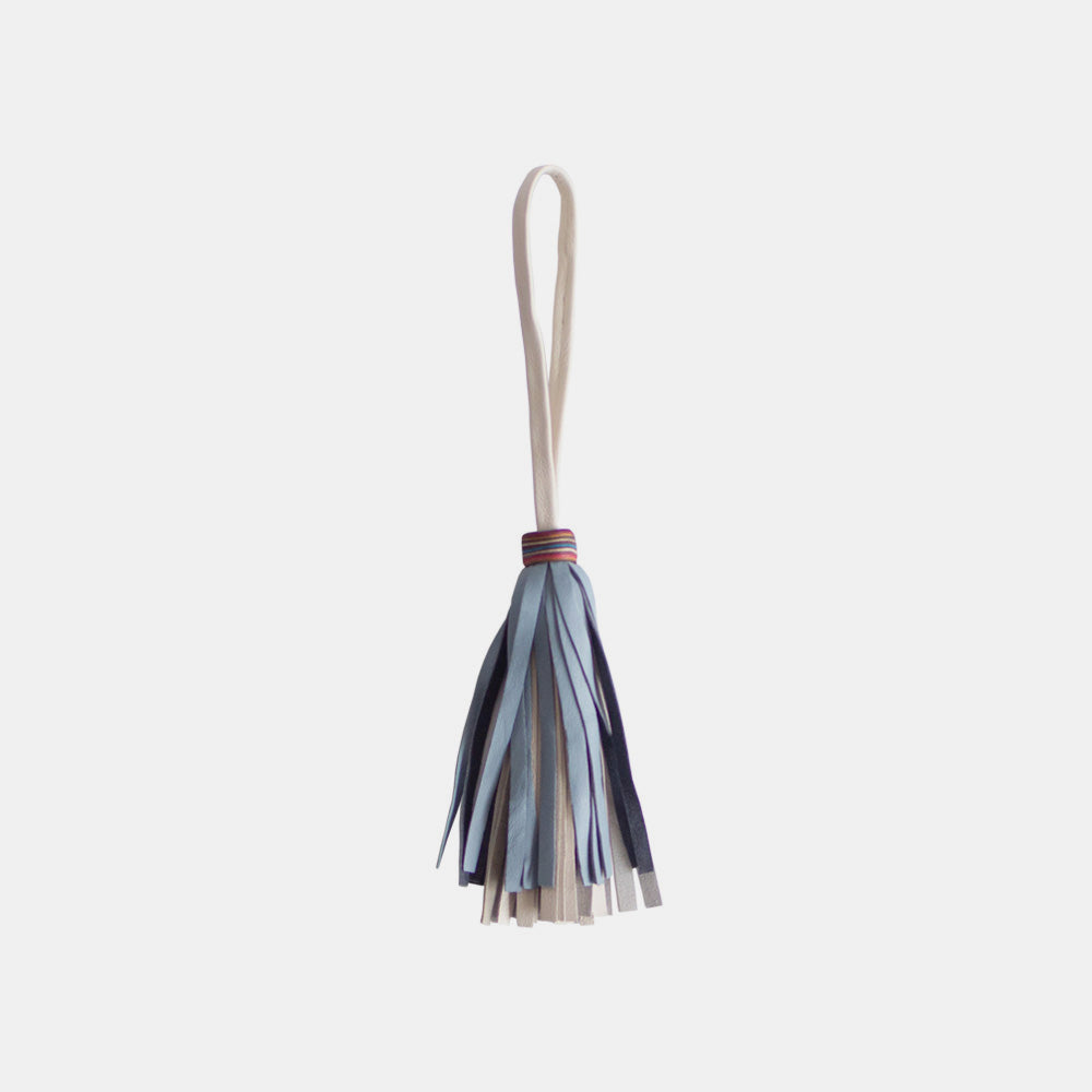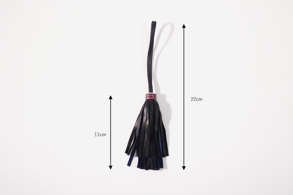 エチオピアシープスキンをひとつひとつ細く加工し、フリンジ状のバッグチャームにしました。