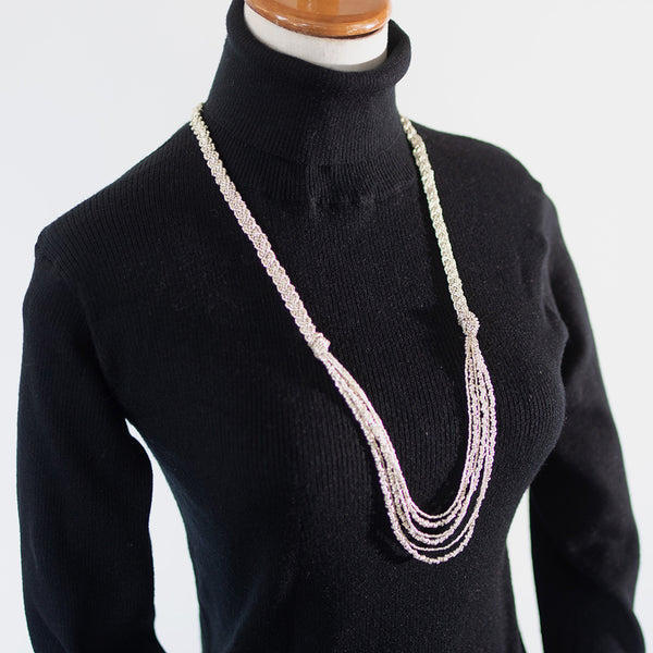 細かいビーズの制作から全てハンドメイドで作られており、ビーズに個体差があるため、ニットやシルクの洋服等の引っ掛かりや白っぽいお洋服への色移りにはご注意ください。 強く引っ張る等のお取り扱いは破損の原因になりますので、製品のお取り扱いには十分お気をつけください。