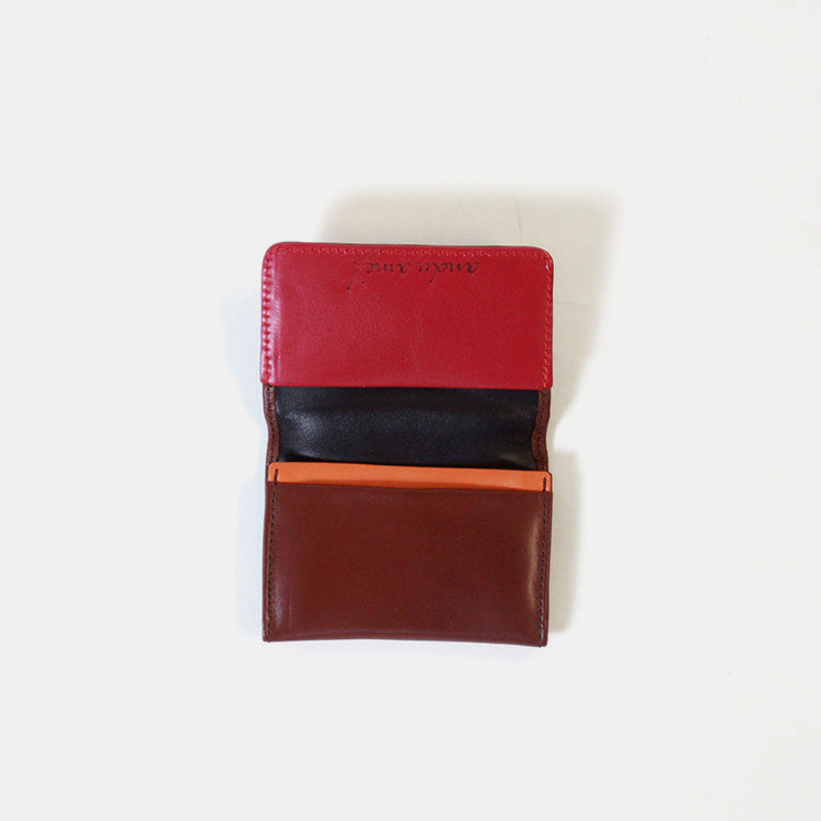 遠目からでも伝わる素材の上質感。ぱっと見はシンプルなデザインながら、フラップをひらくと目に飛び込む華やかなカラーリング。そしてサステナブルな社会への想い。初対面の方とのご挨拶に使うツールだからこそ、自分らしいこだわりのアイテムを。