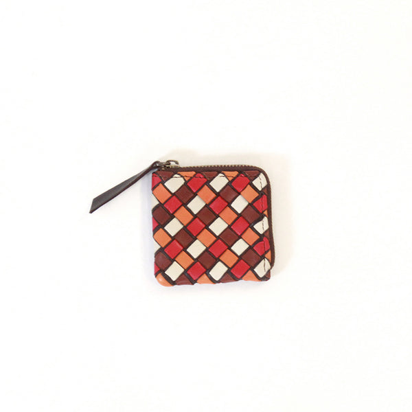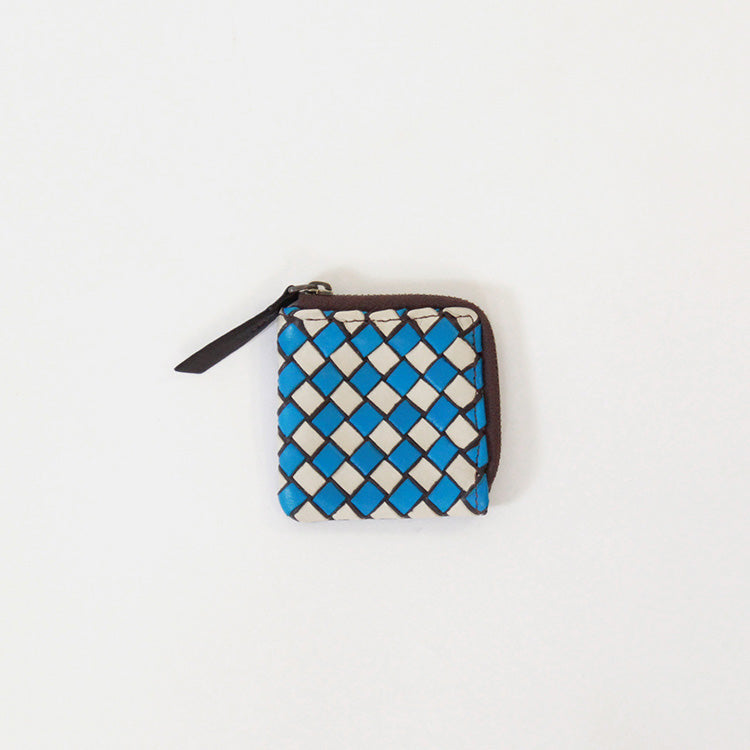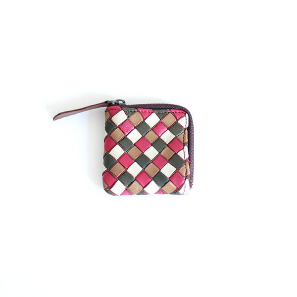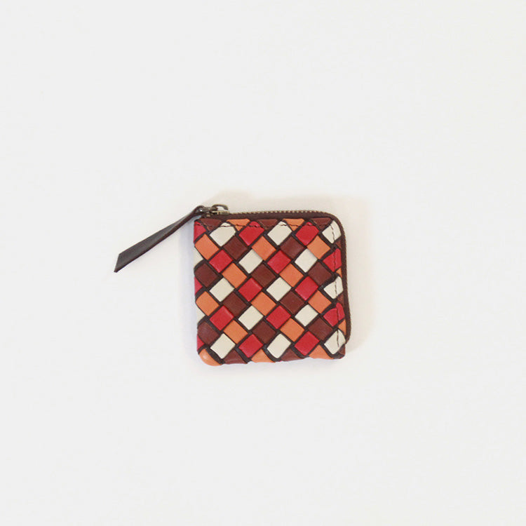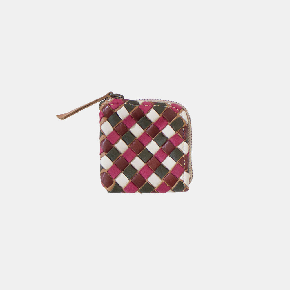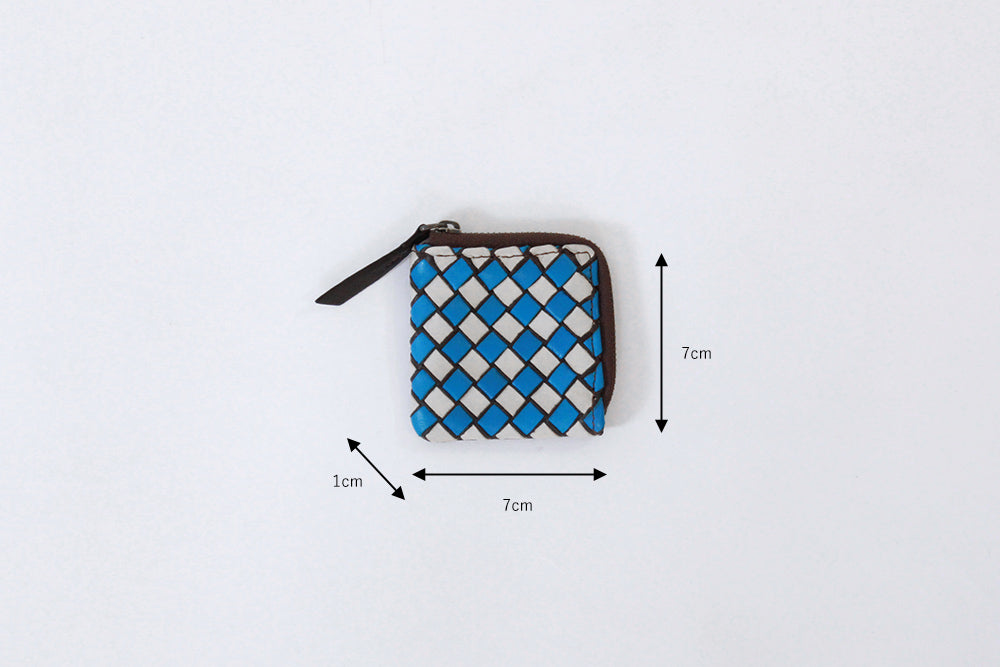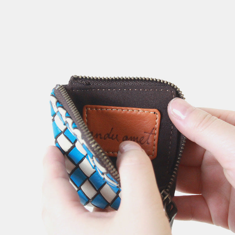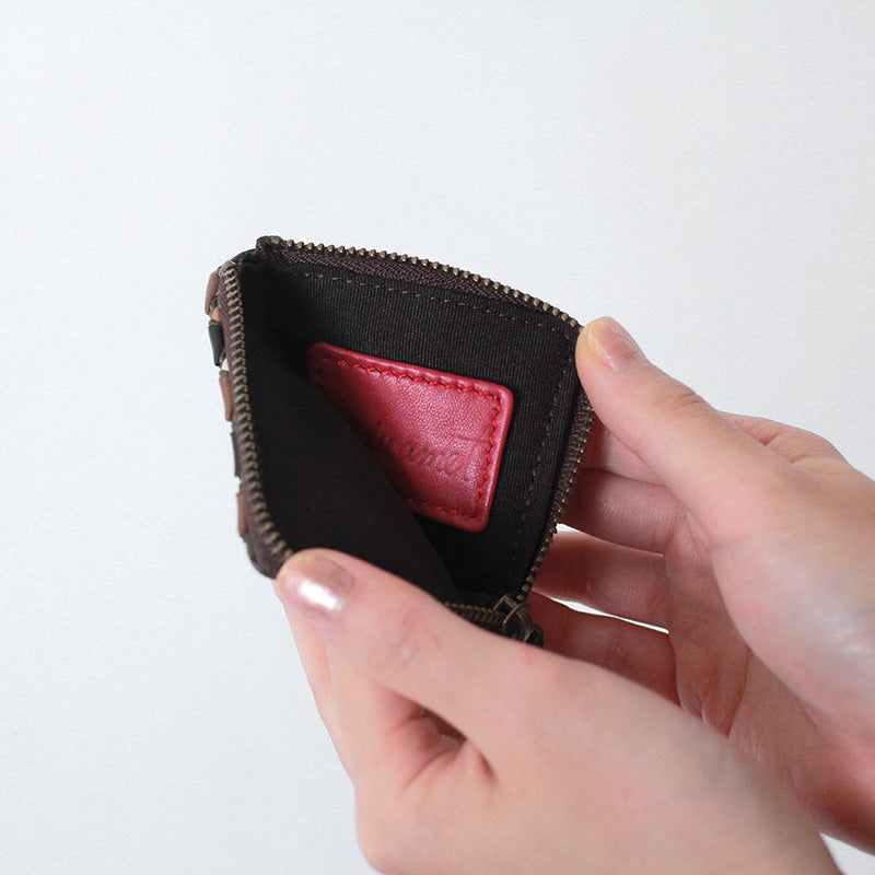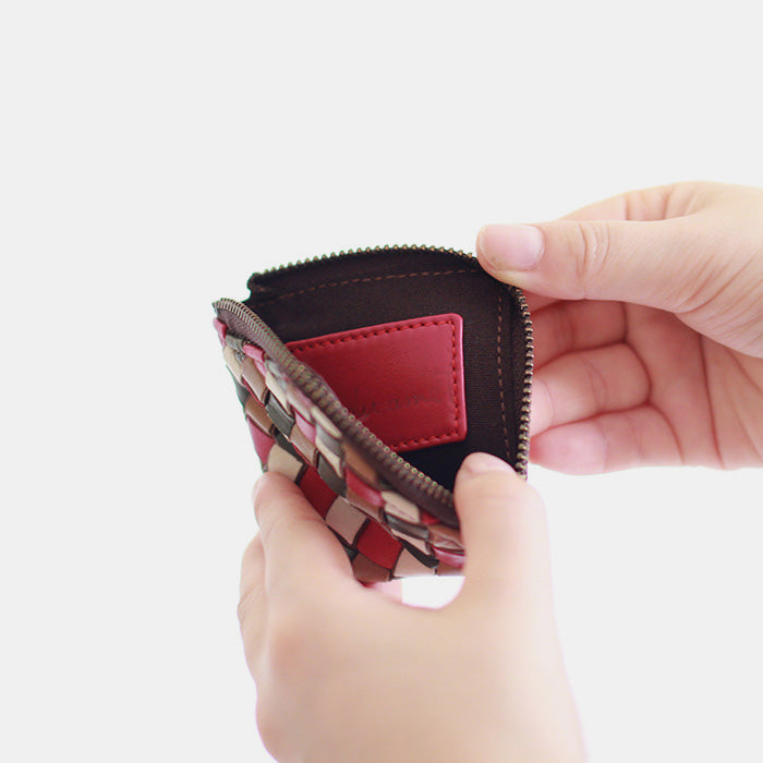 目にしただけで元気になれそうな、鮮やかなレザーを、職人が時間をかけてひとめひとめ編み上げて、まるで工芸品のようなコインケースができました。使うほどに味わいを増す革の感触をどうぞお楽しみください。