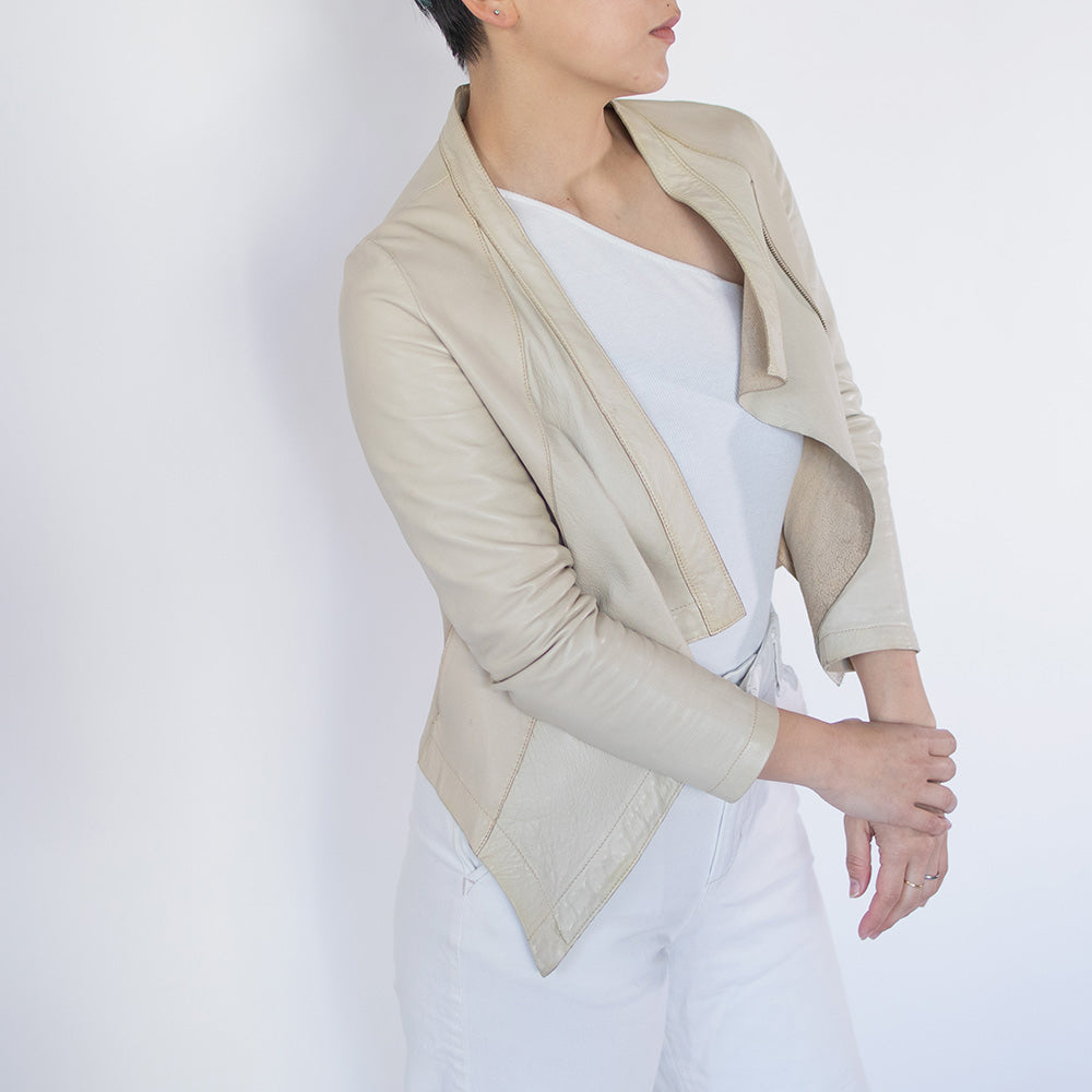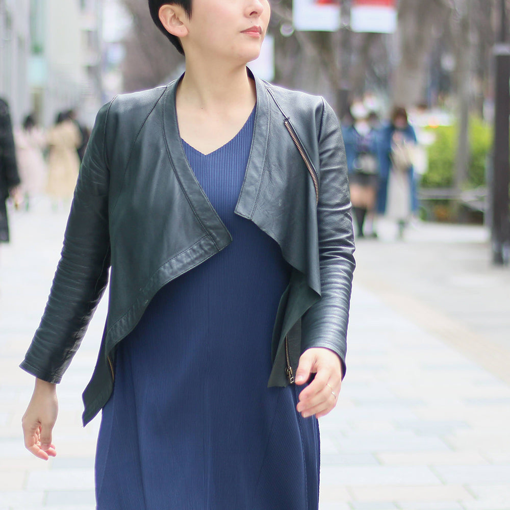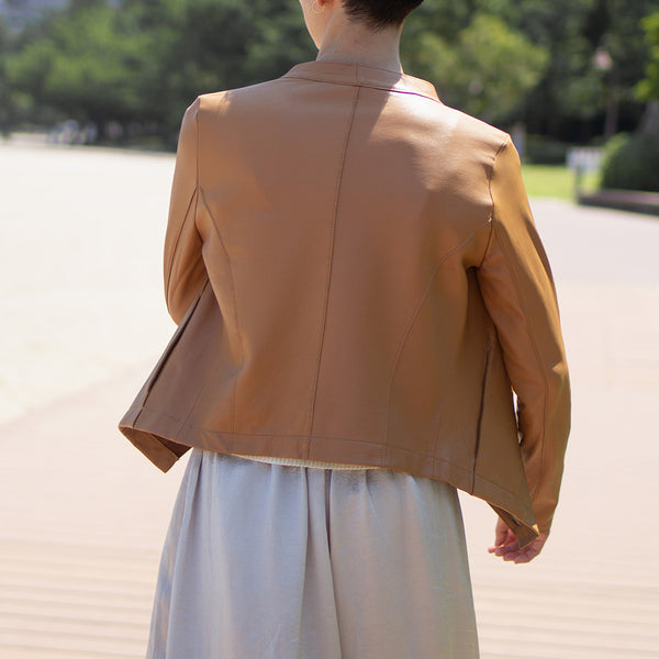 またレザージャケットというカジュアルなアイテムながらも、女性らしいシルエットや上質感のある素材で、オンの日もオフの日も着回しOK!