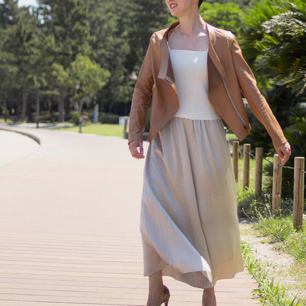 動くたびにそよ風をはらみ、軽やかに広がるドレープの美しさをお楽しみください。