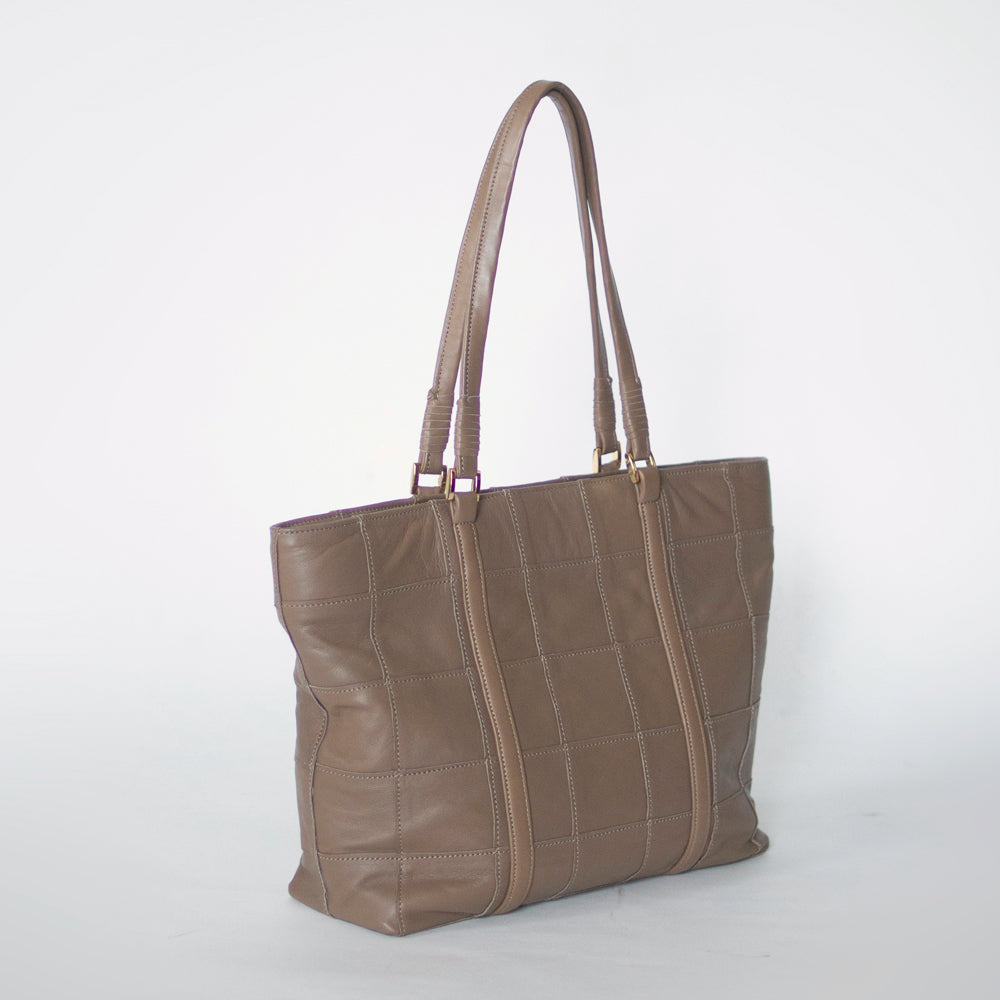 スクエア状に裁断されたレザーを一針ずつ丁寧に縫い上げる緻密な手仕事。細身のハンドルとミニマルなシルエット。ビジネスシーンにも馴染む、端正で静かな佇まいを演出します。
