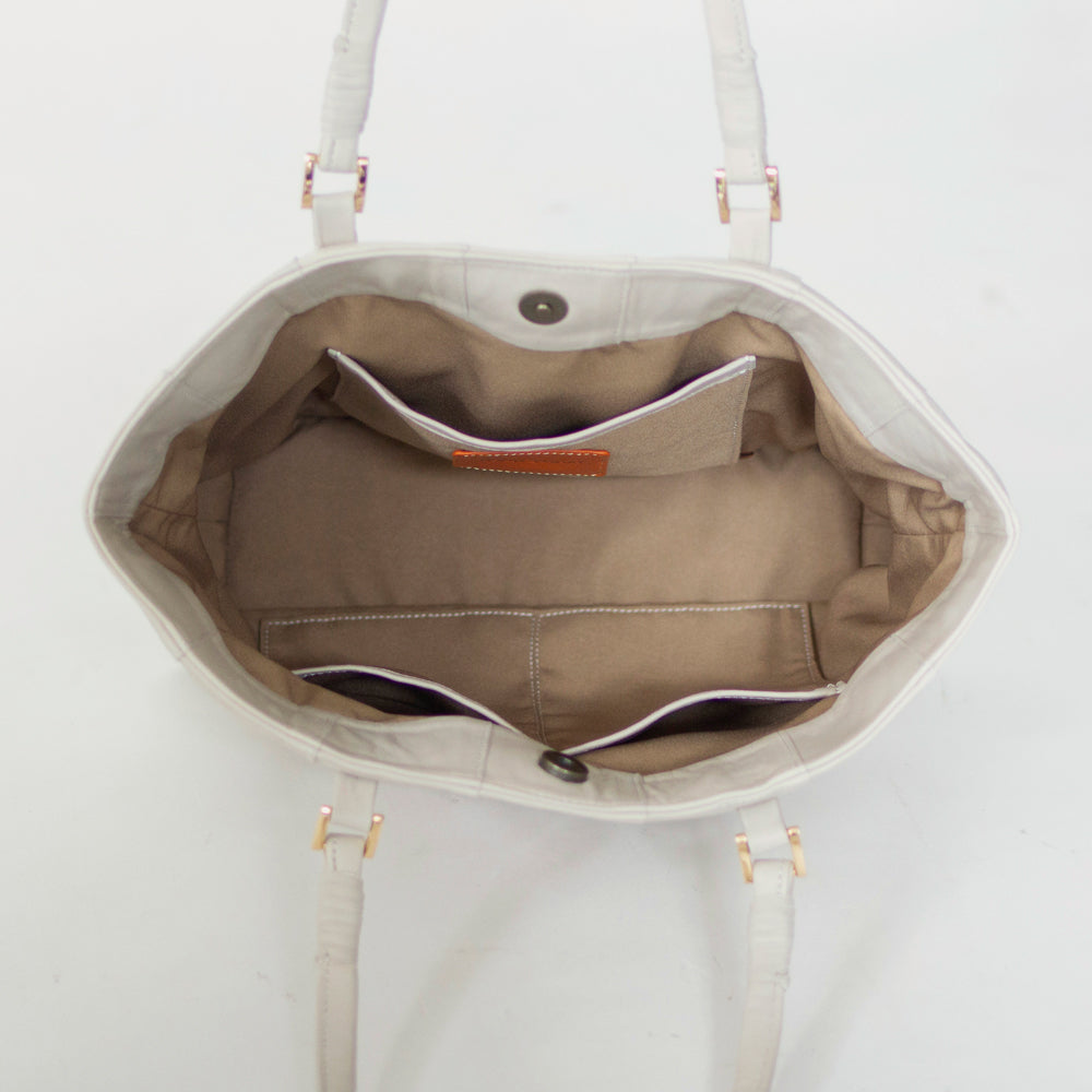 肩にかけるとぴったり脇に納まるスリムなサイズ感。450gというレザートートとは思えない驚きの軽さ。大きく開く口元と、ノートPCまできっちり収まる収納力。外側と内側4つのポケットには、スマホやイヤホン、名刺入れなどのガシェット類を。日常に必要な全てをコンパクトにスタイリッシュに持ち運びいただけます。