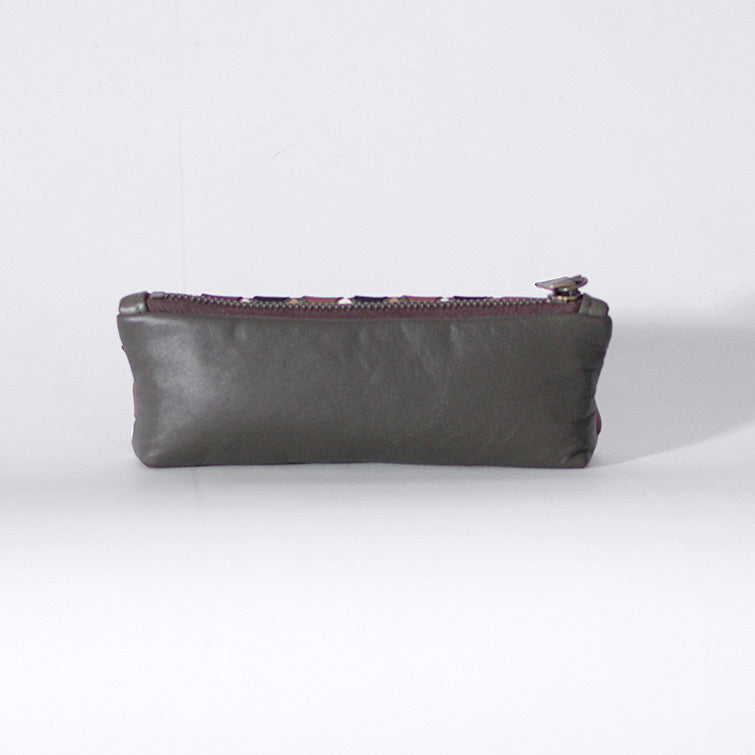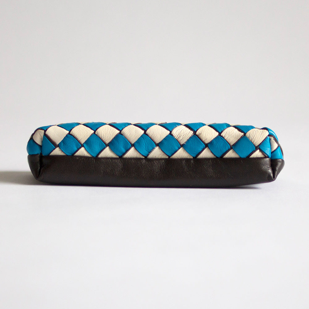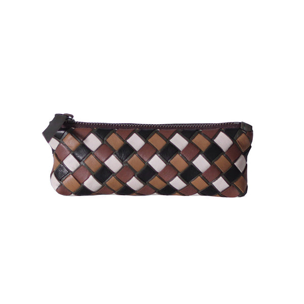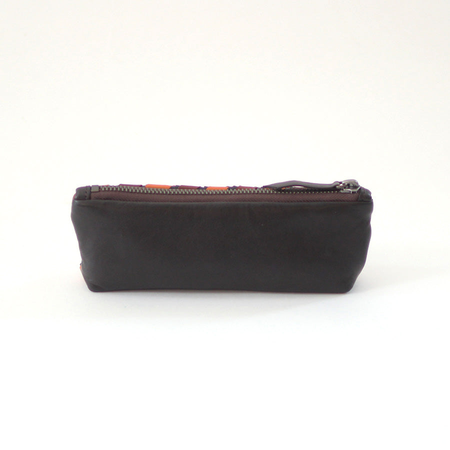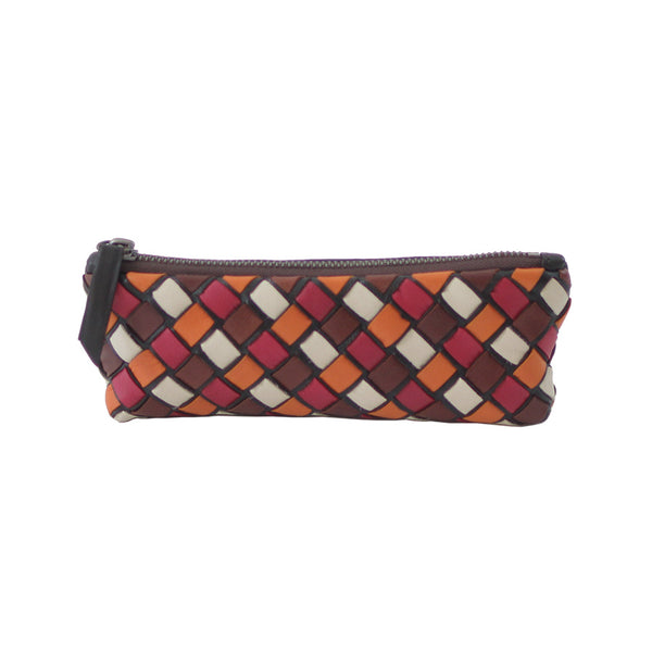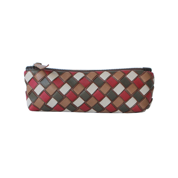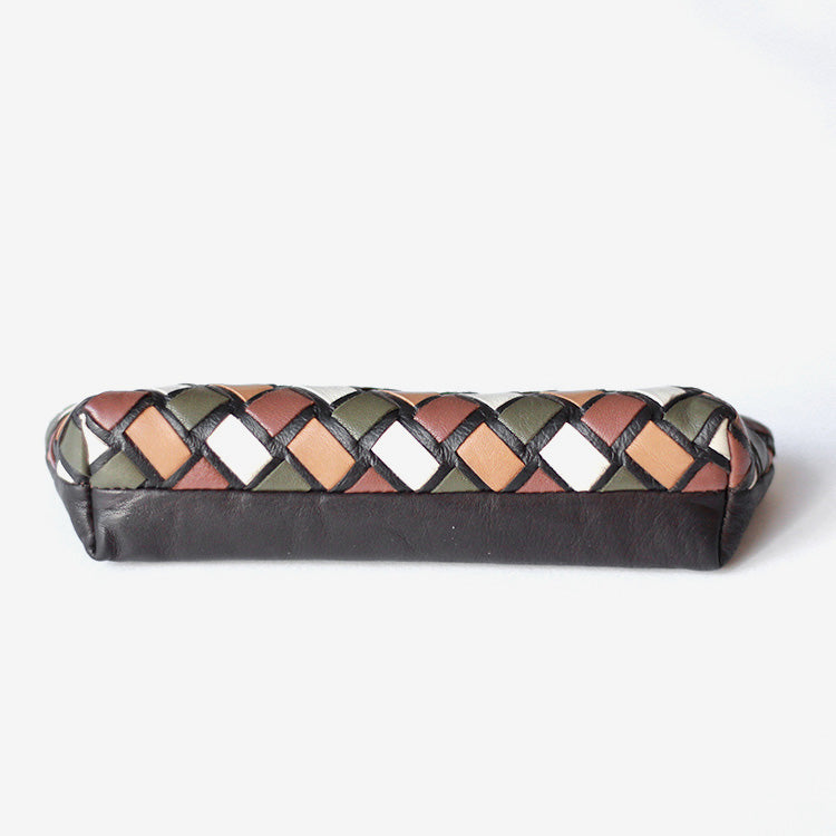 目にしただけで元気になれそうな、鮮やかなレザーを、職人が時間をかけてひとめひとめ編み上げて、まるで工芸品のようなペンケースができました。表目はもちろん、内側のロゴやファスナーの引き手もエチオピアシープスキンを贅沢に使用しています。使うほどに味わいを増す革の感触をどうぞお楽しみください。