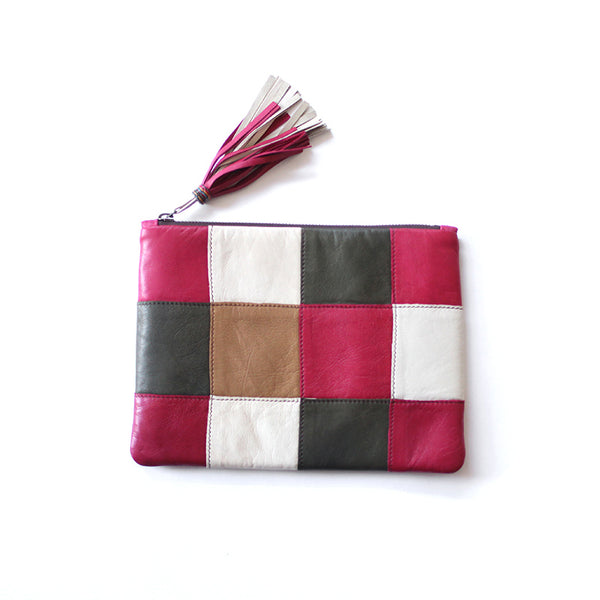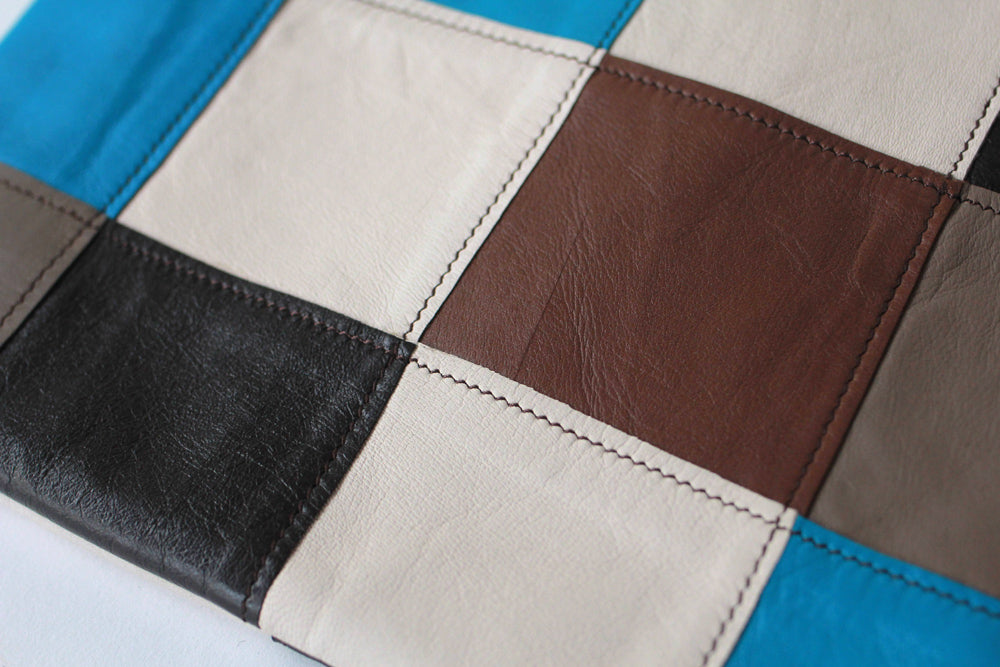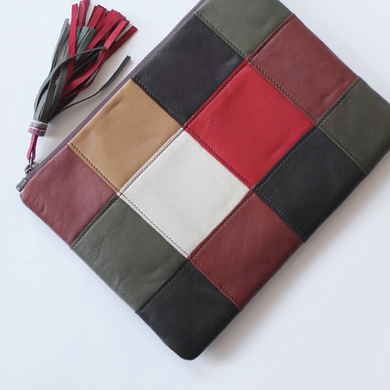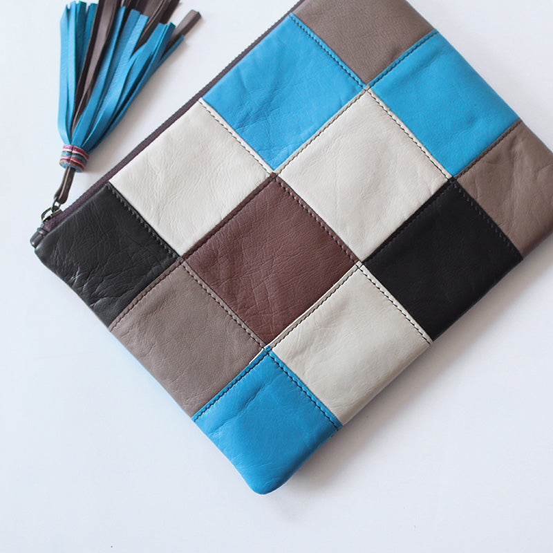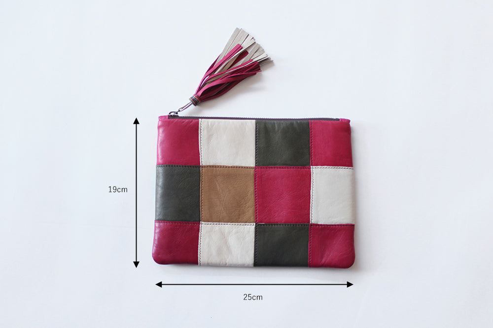 予想外の配色で目を楽しませてくれるパッチワーク風デザイン。不規則なカラーリングを引き立てる、ハンドメイドで生み出された美しいカッティングと縫製もご堪能ください。