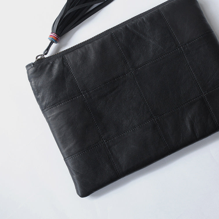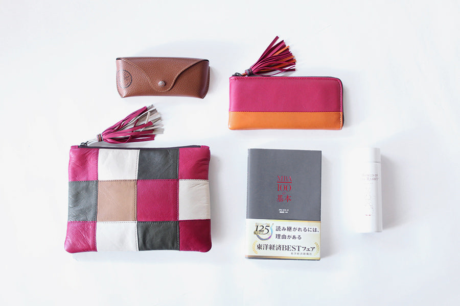 レザーは一つとして同じ風合いのない偶然の産物です。「しわ・色むら・きず」などは、本来皮がもつ個性なのです。このバーサタイルポーチは、あえてこれらの特徴を活かし、唯一無二のデザインとしてお楽しみいただける製品です。